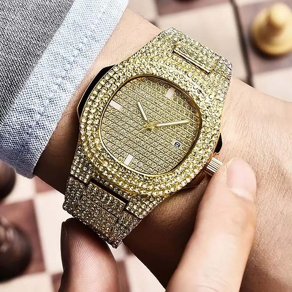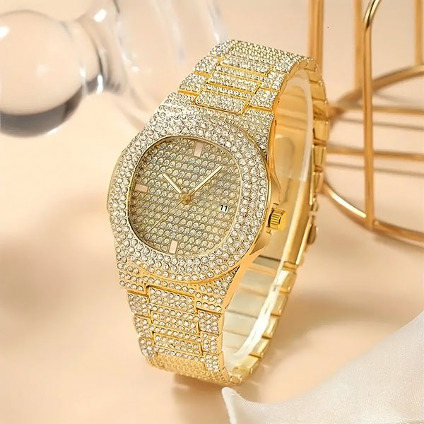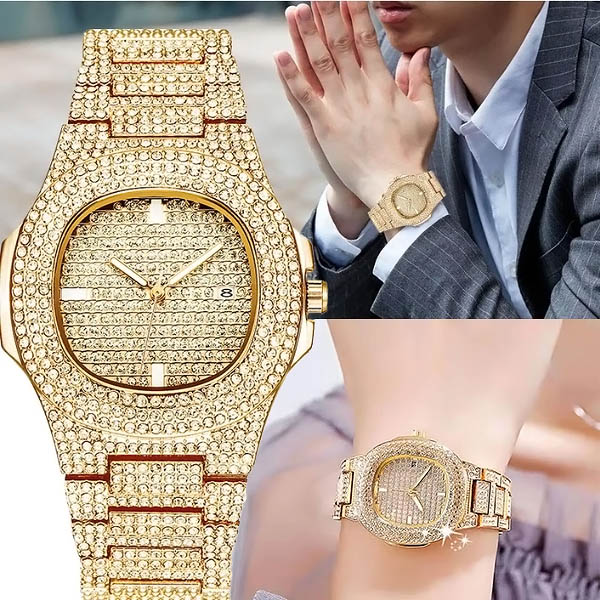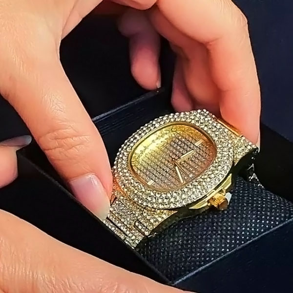 Хиляди блестящи кристали превръщат този часовник в главозамайващ. Това не е просто часовник – той е смело изявление за лукс и елегантност.