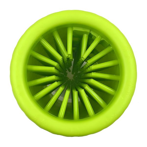 Цилиндричният дизайн ви позволява ефективно да измивате труднодостъпните места. Просто поставете лапата на кучето си, завъртете я и оставете силиконовите косъмчета да отстранят мръсотията и замърсяванията. Насладете се на безупречен дом без проблеми.